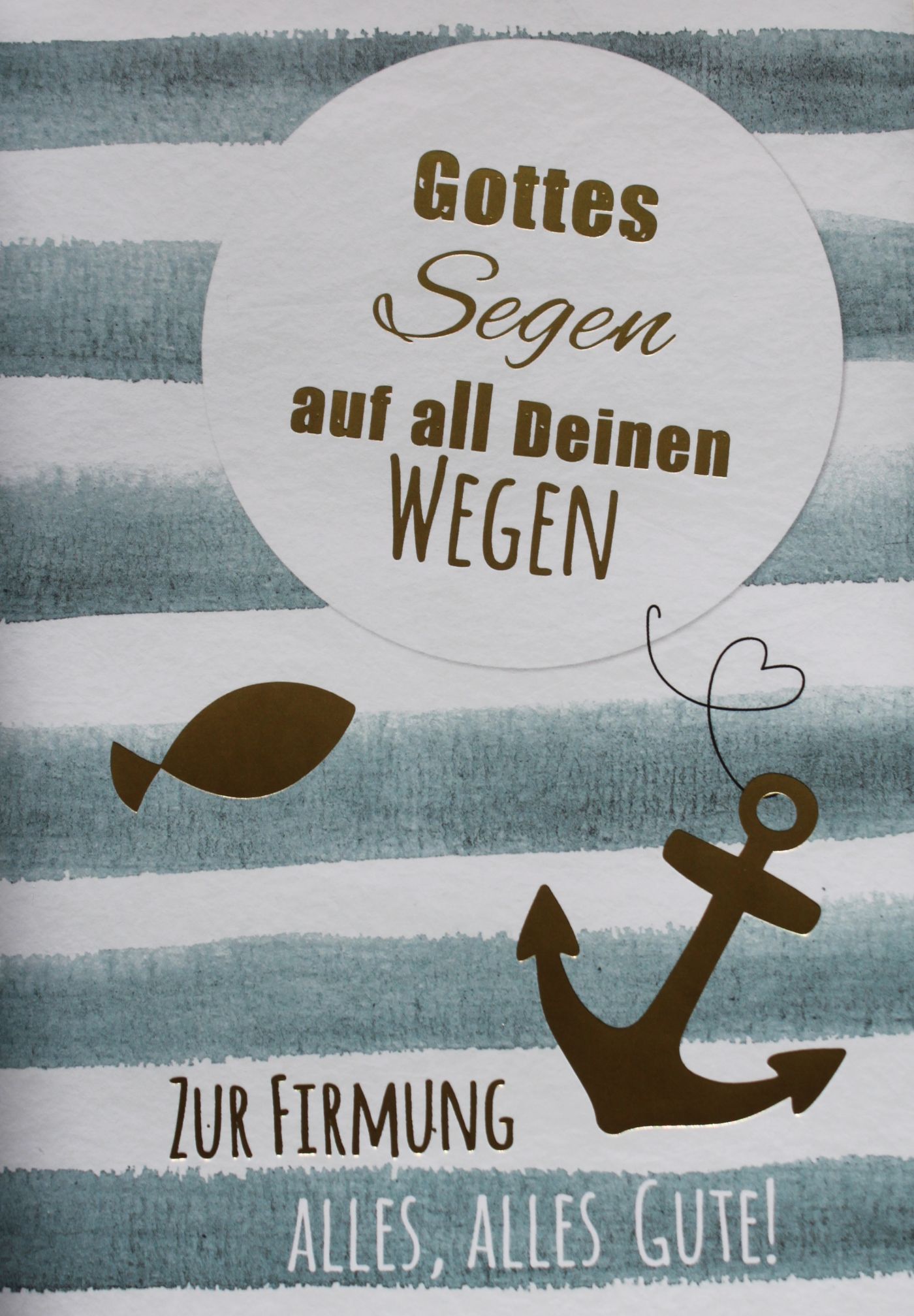 Hochwertige Karte zur Firmung die durch eine goldfarbige Heißprägefolie veredelt wurde.