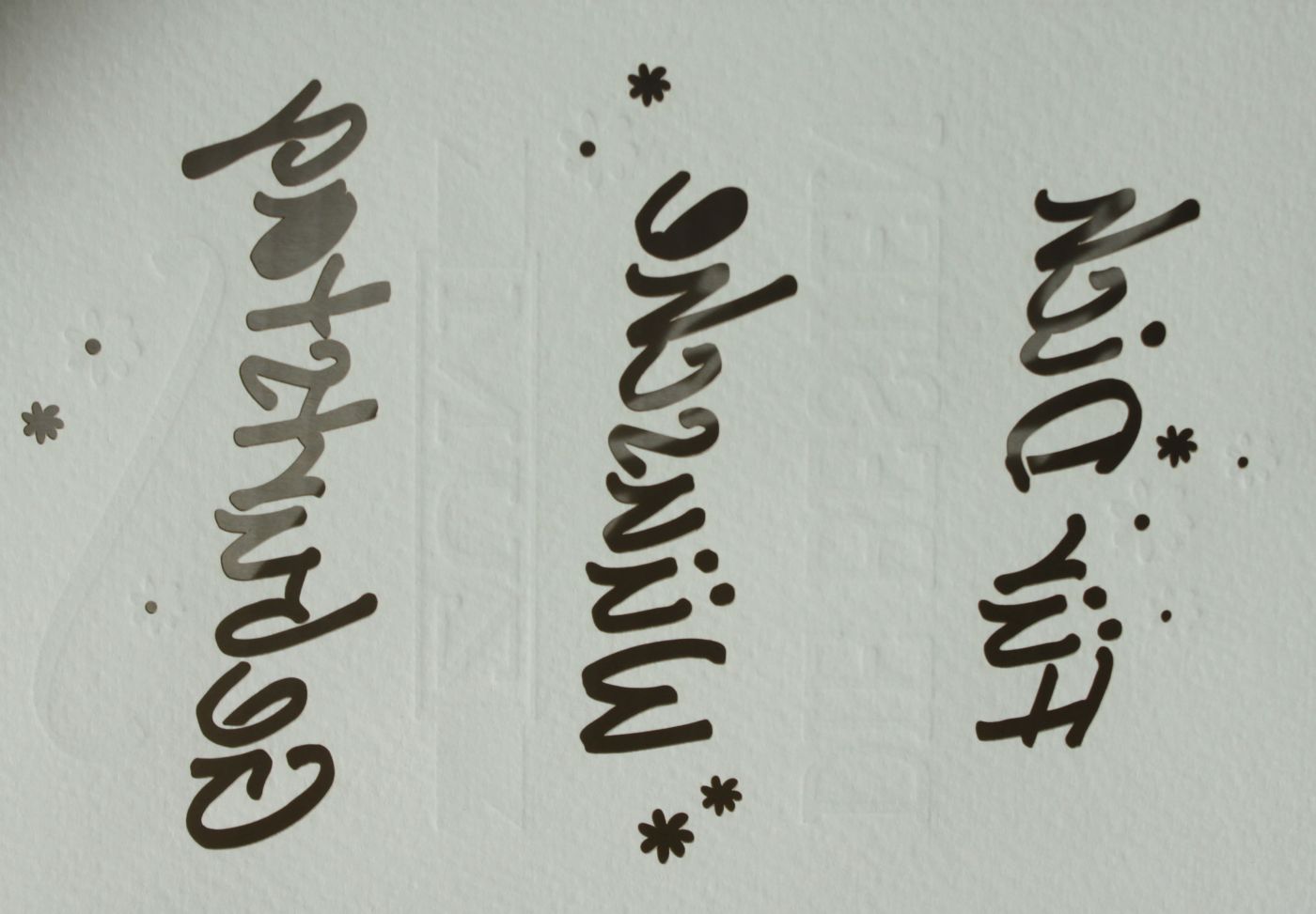 Hochwertige Geburtstagskarte die durch ein spezielles Laserdruckverfahren, auf einem beigen Kartonpapier, ausgestanzt wurde.
