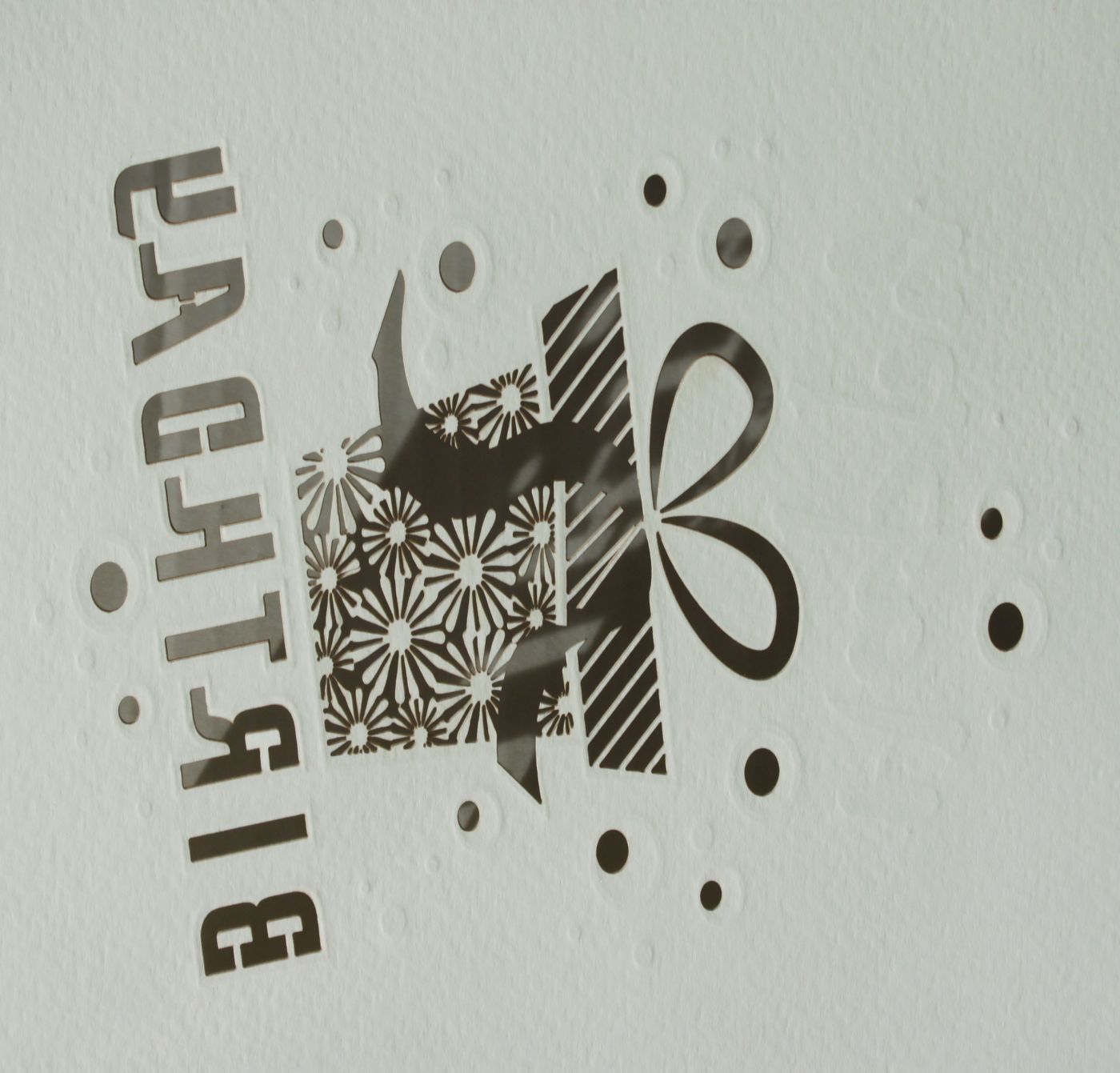 Hochwertige Geburtstagskarte die durch ein spezielles Laserdruckverfahren, auf einem beigen Kartonpapier, ausgestanzt wurde.
