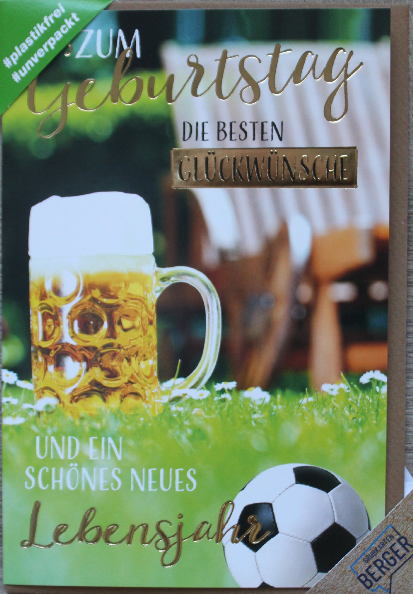 Sehr hochwertige Geburtstagskarte die durch eine goldfarbige Heißprägefolie veredelt wurde.