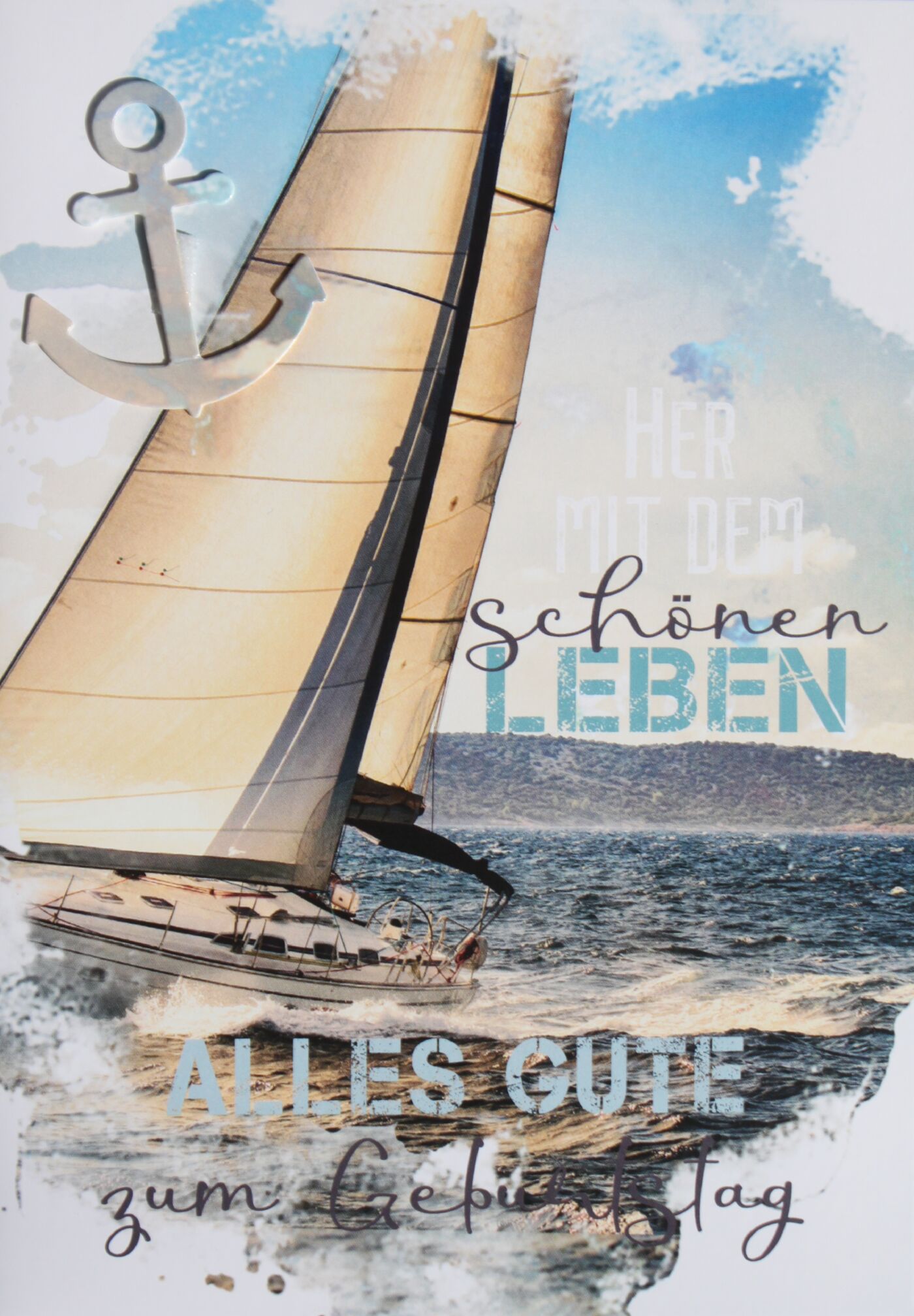 Sehr hochwertige Geburtstagskarte mit einem aufgekleblen Anker.