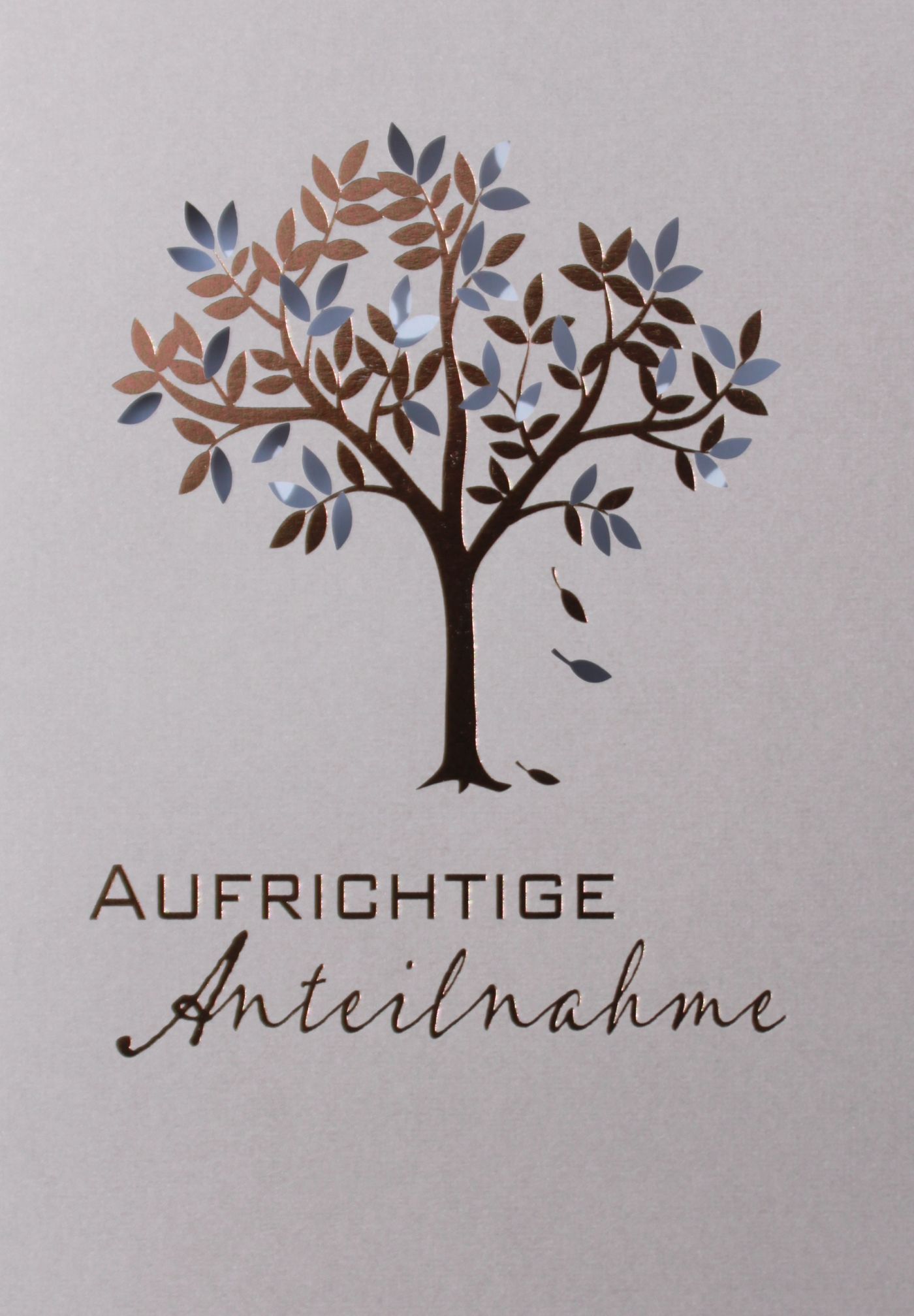 Hochwertige Trauerkarte die durch ein spezielles Laserdruckverfahren, auf einem braunen Kartonpapier, ausgestanzt wurde.