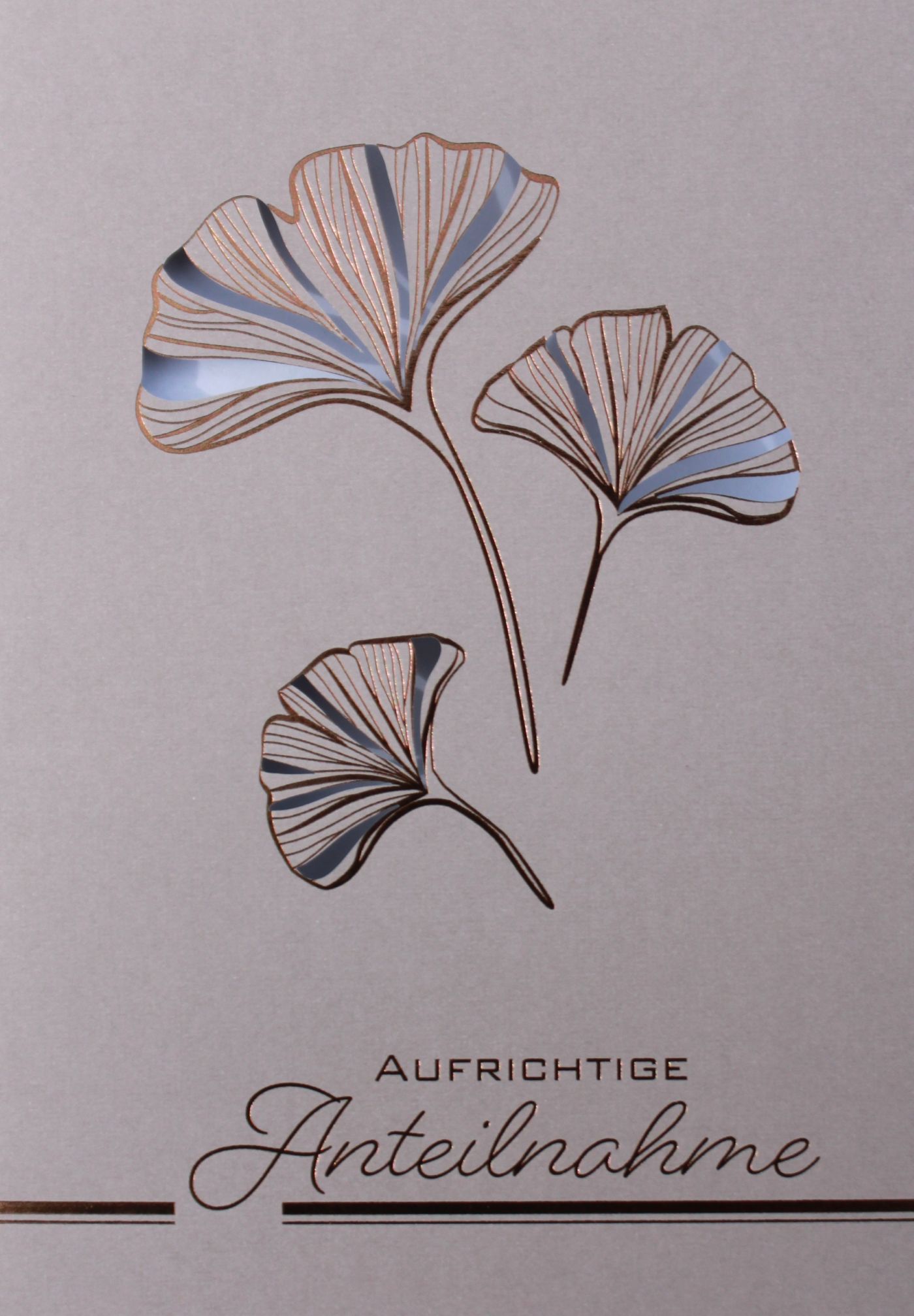 Hochwertige Trauerkarte die durch ein spezielles Laserdruckverfahren, auf einem braunen Kartonpapier, ausgestanzt wurde.