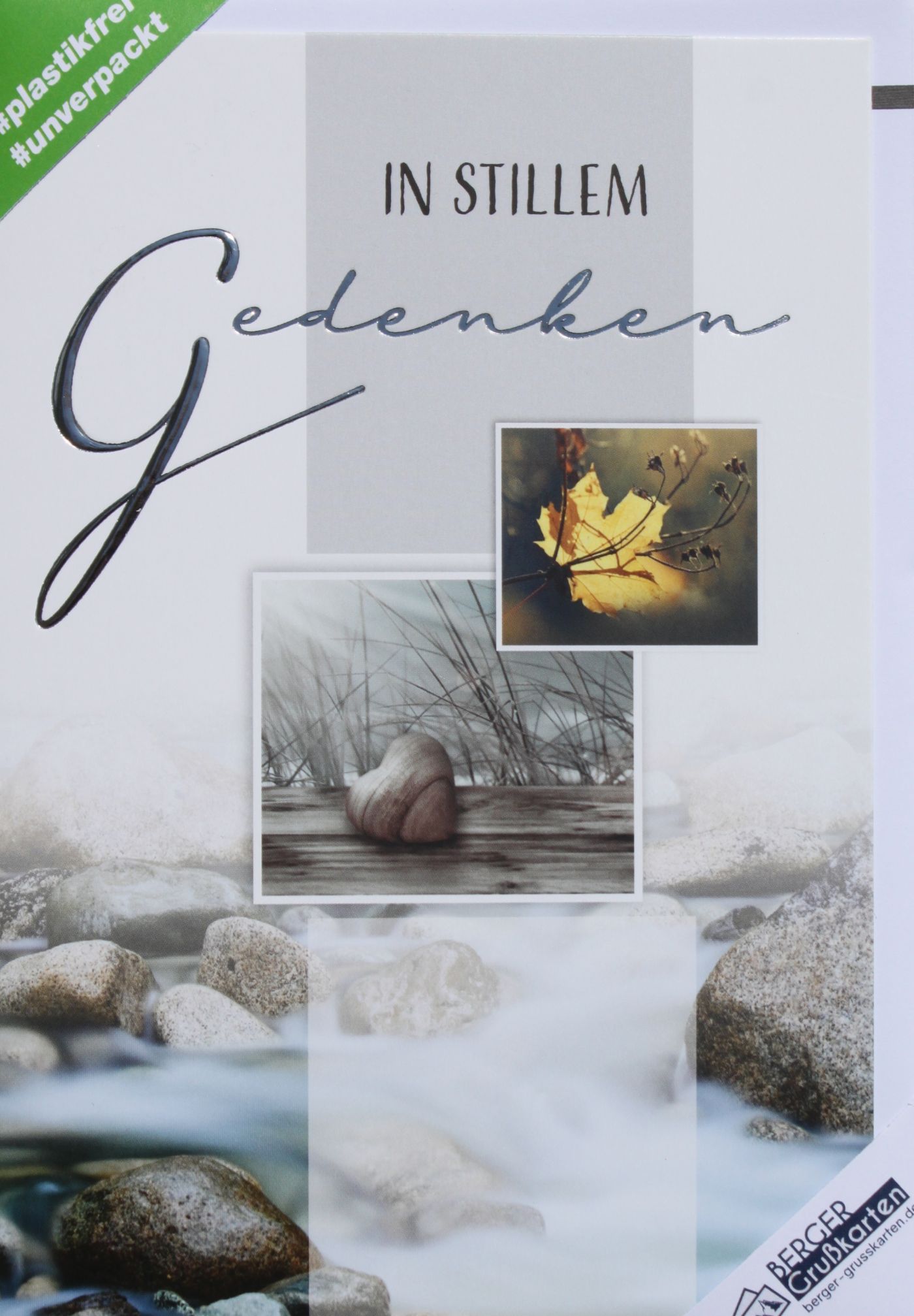 Hochwertige Trauerkarte die durch eine silberfarbige Heißprägefolie veredelt wurde.