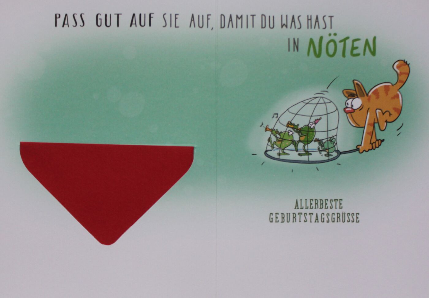 Hochwertige Geburtstagskarte auf der eine große Geldscheintasche (passend für Scheckkarten) auf der Karte angebracht wurde.