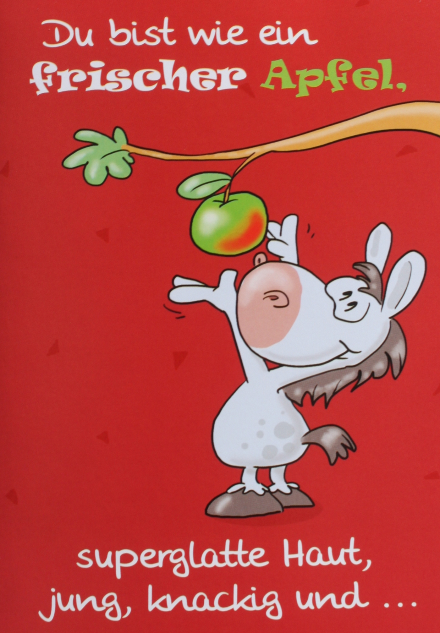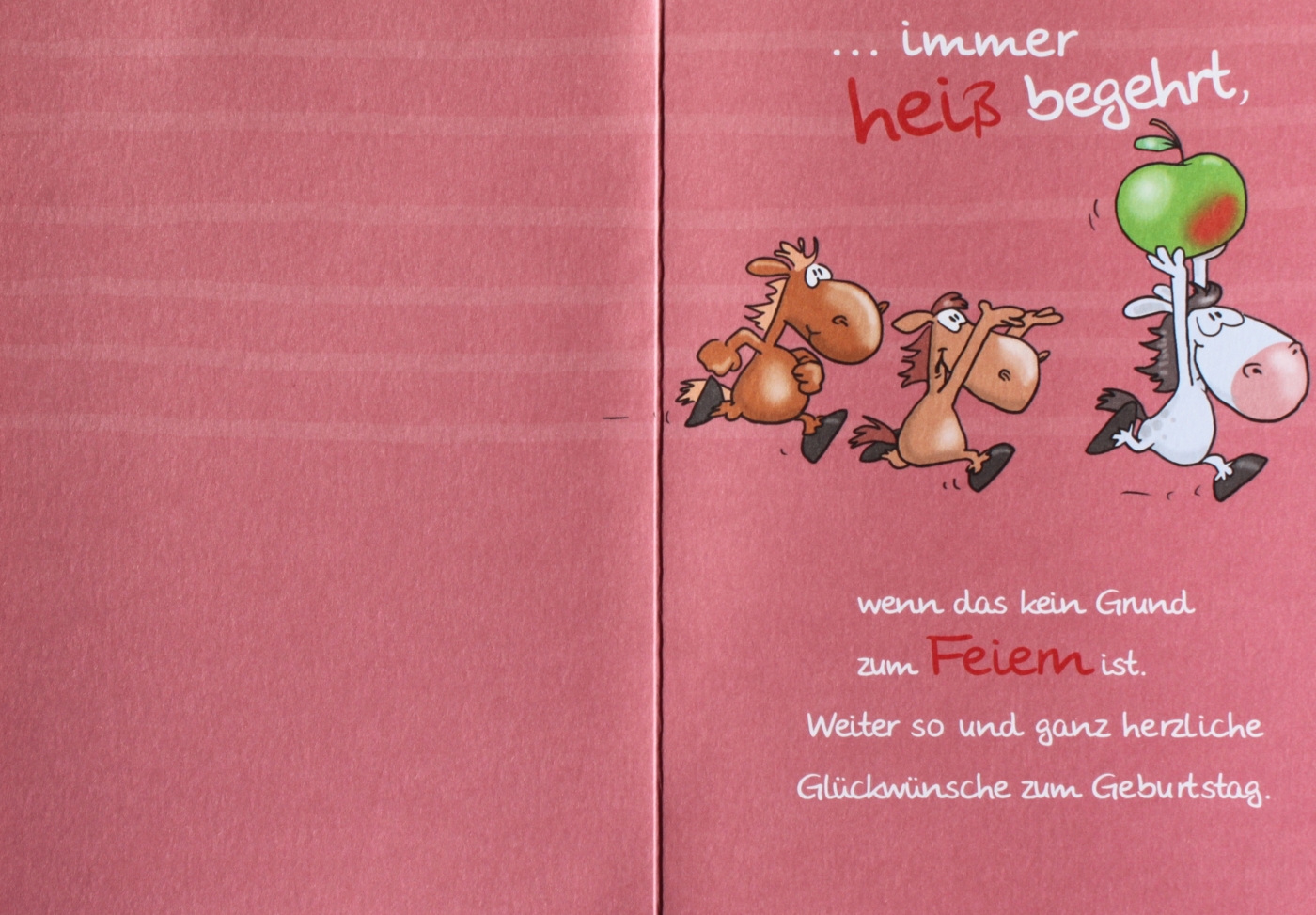 Hochwertige Karte zum Geburtstag mit lustigen Humorsprüchen auf der Kartenoberseite und Innenseite (siehe Bild 2).