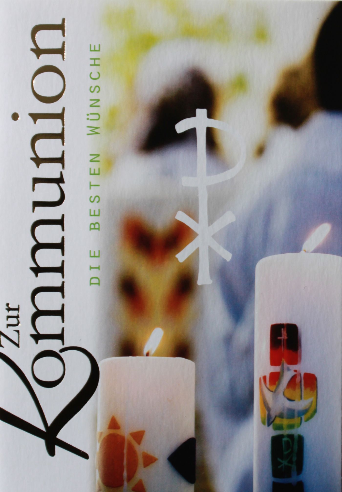 Hochwertige Kommunionskarte die mit goldfarbiger Heißprägefolie veredelt wurde.