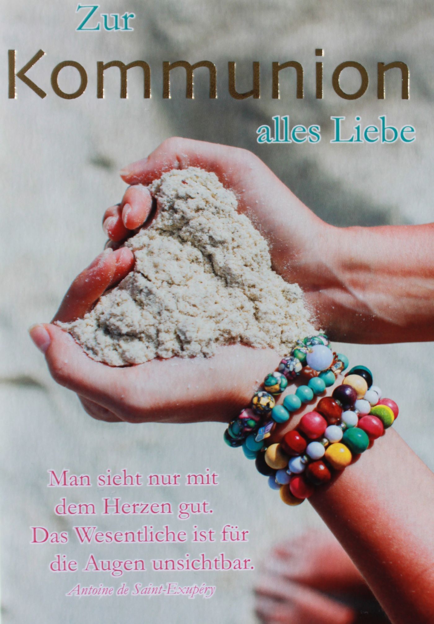 Hochwertige Kommunionskarte die mit goldfarbiger Heißprägefolie und Spruch veredelt wurde.