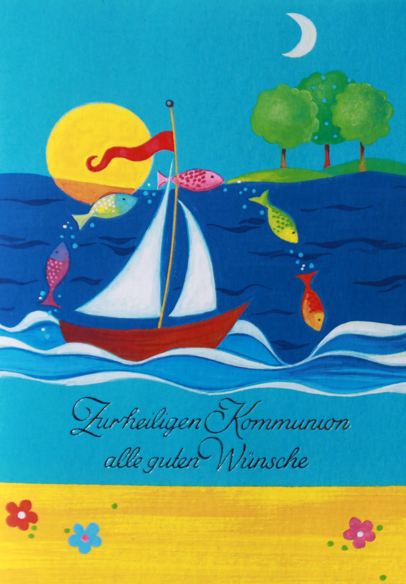 Hochwertige Kommunionskarte die mit goldfarbiger Heißprägefolie veredelt wurde.