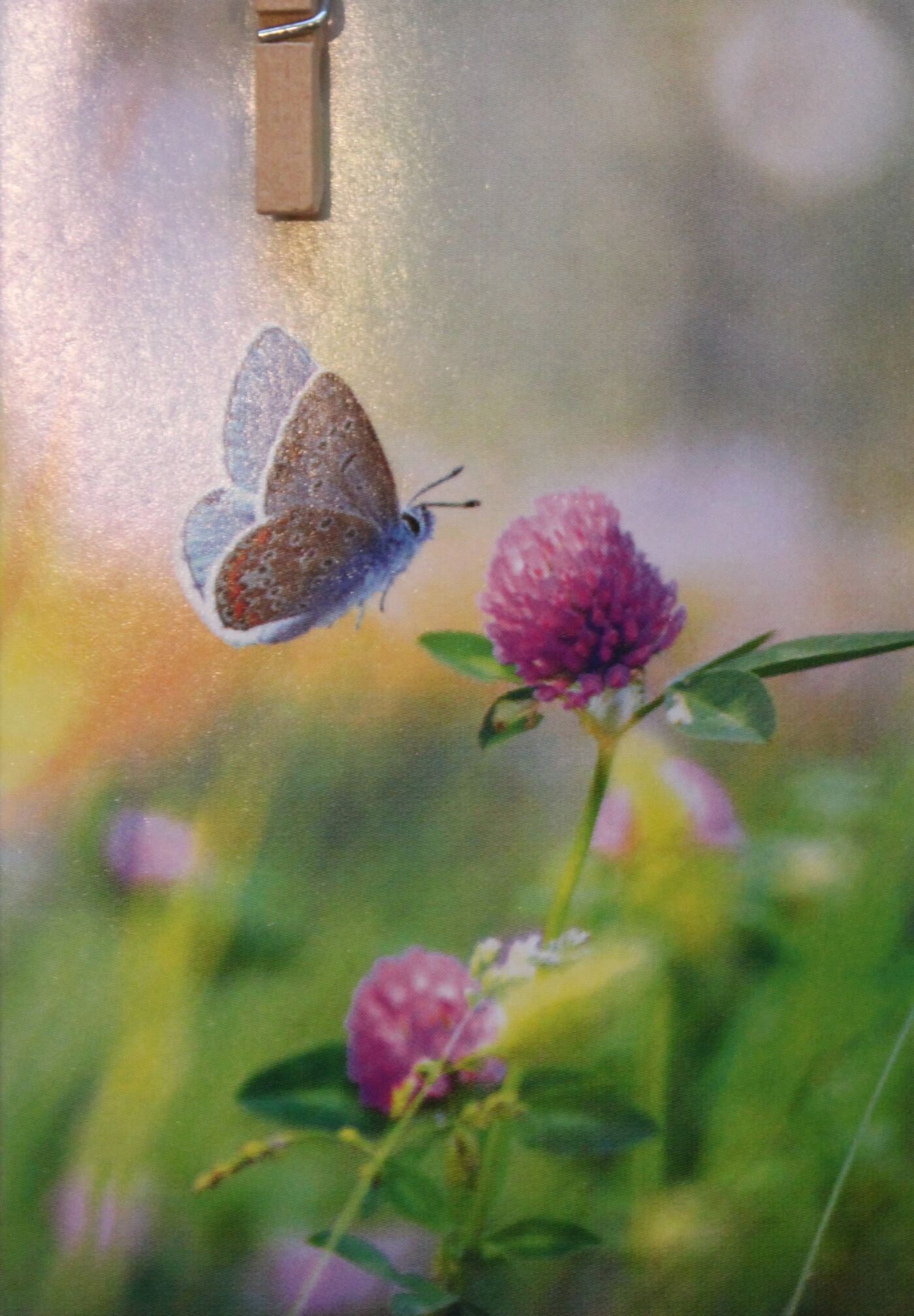 Hochwertige Minikarte mit farbiger passender Klemme zur Befestigung an Blumensträuße oder Geschenke mit Fotomotiv.