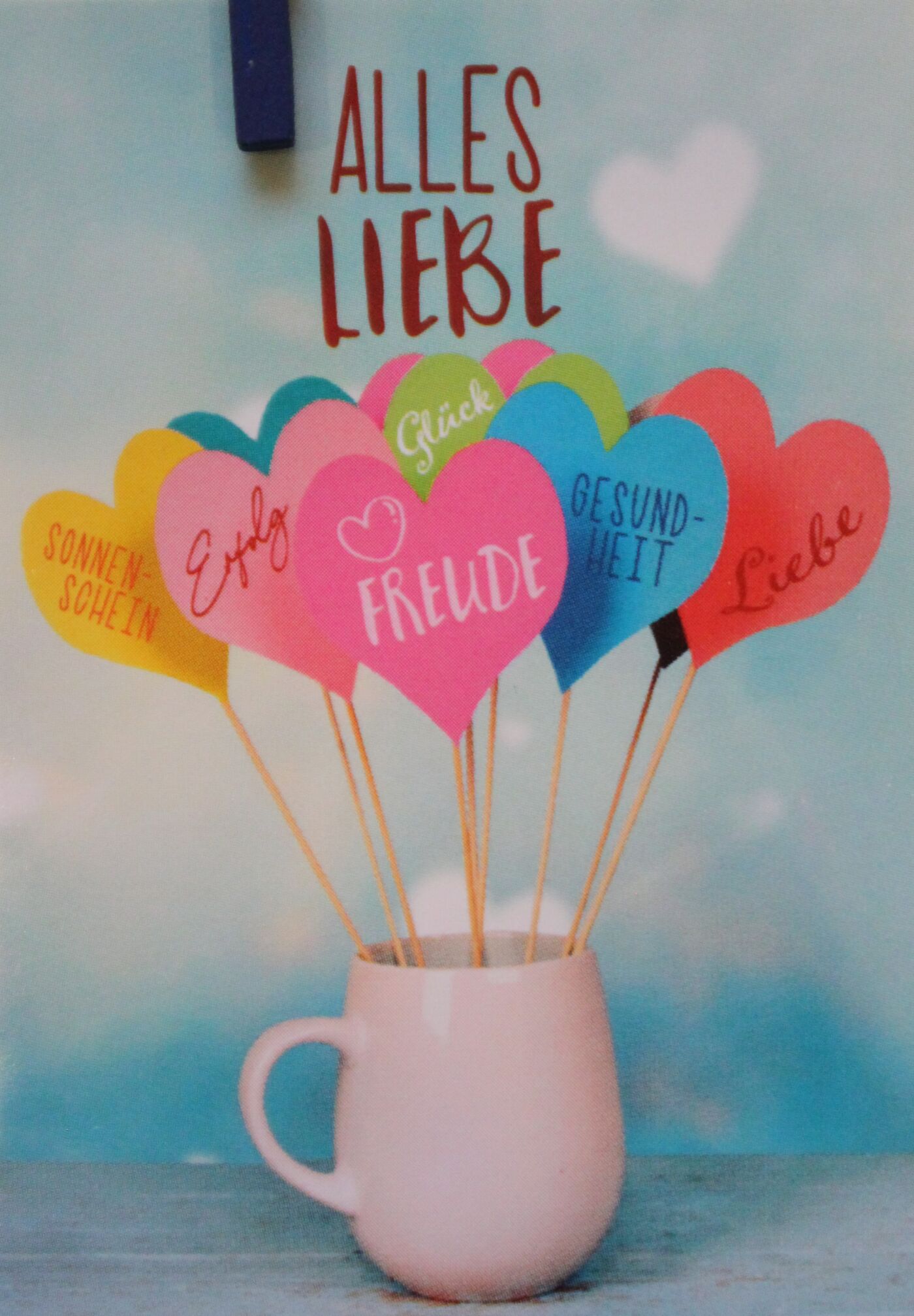 Hochwertige Minikarte mit farbiger passender Klemme zur Befestigung an Blumensträuße oder Geschenke mit Fotomotiv.