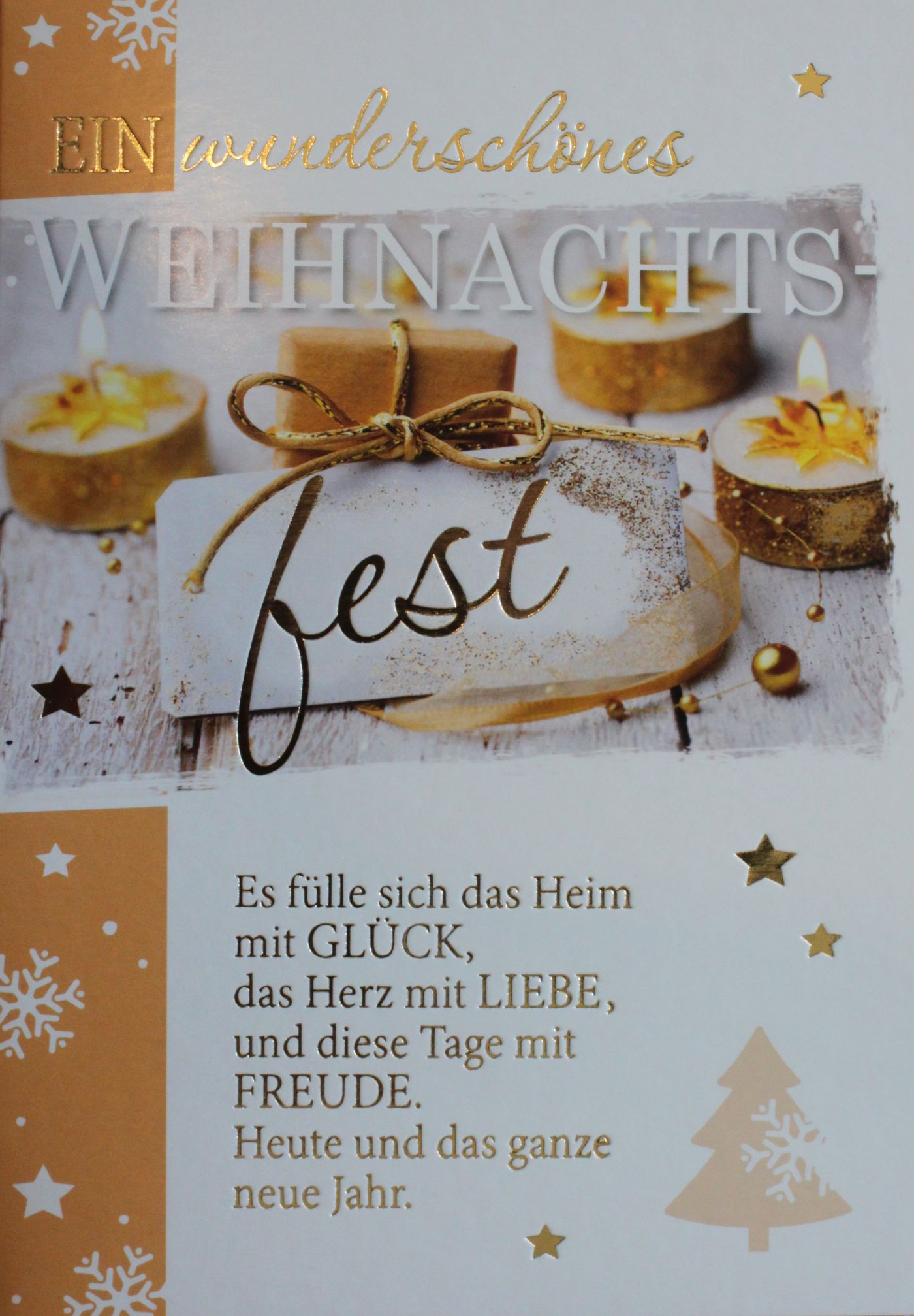 Hochwertige Weihnachtskarte die durch eine goldfarbige Heißprägefolie veredelt wurde.
