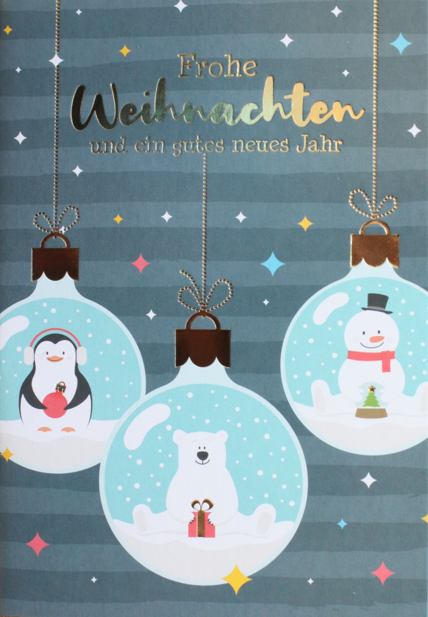 Hochwertige Weihnachtskarte die durch eine goldfarbige Heißprägefolie veredelt wurde.