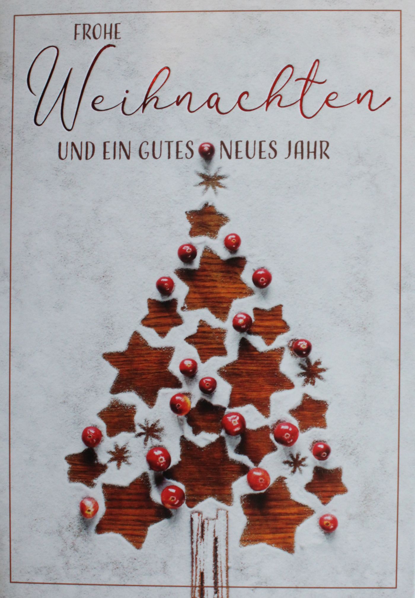 Hochwertige Weihnachtskarte die durch eine goldfarbige Heißprägefolie veredelt wurde.